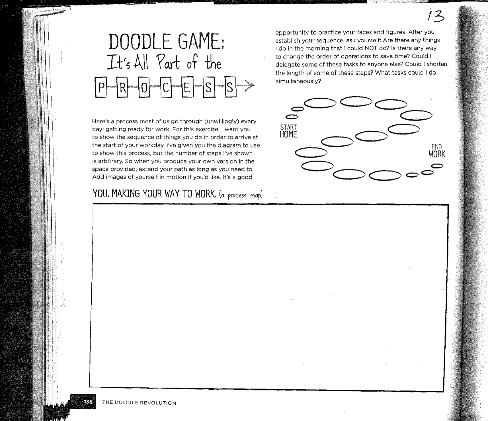 Then, I return to the time I’ve laid out on the other side of the page, and sketch in what I intend to work on throughout the day at specific times.
